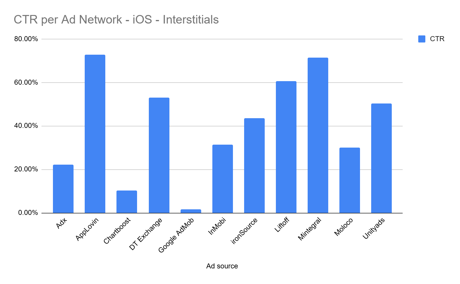 Since each ad network has its own specific ad template, we wanted to see how their user experience translates to the above-mentioned metrics. Data was collected for multiple titles that we’re managing, and the breakdown was done by the ad network.